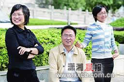 在开福区当“村官”的刘燕(右)刘红南(中)和蒋多利(左)。图/记者殷建军