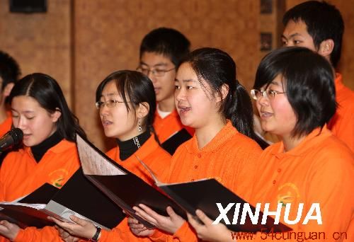 清华大学合唱队队员在颁奖典礼上演唱《拥抱大地》