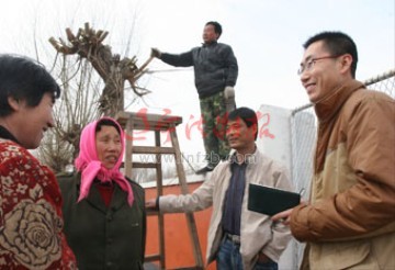 日前,鞍山市台安县新开镇注重对刚上岗的大学生“村官”进行综治培训,使他们能认识到农村的稳定是经济发展的保证,真正深入到农村综治工作中,把农村综治工作作为重中之重,积极带头为农村的稳定、和谐、发展献计献策,开展新农村建设。图为“村官”肖云鹏(右一)在村民中进行矛盾排查。