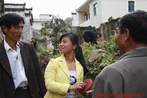 | 朱文艳(左)上门征求群众意见与村民交谈 |