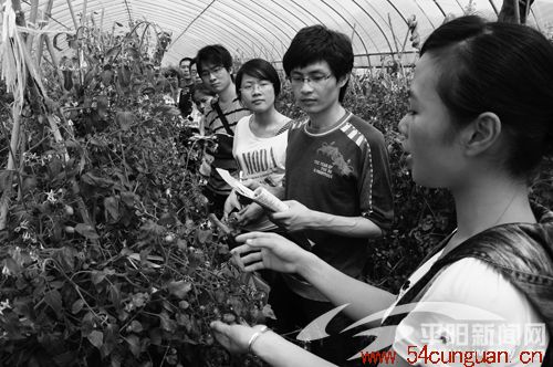 昨日,山门片区9个乡镇的37名大学生村官到山门镇悦来、屿边等村开展交流活动,对该镇新农村建设和农村经济发展进行调查了解,以吸取经验,更好地服务农村发展。图为大学生村官在了解大棚蔬菜种植情况。