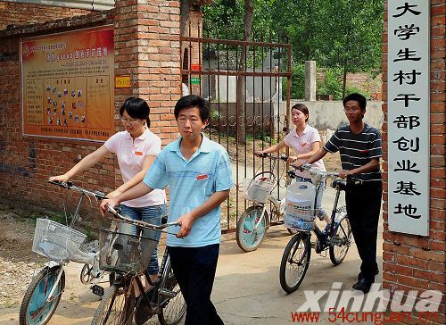 6月6日,河南省嵩县何村乡的“大学生村官”走出创业基地,返回各自的村庄。