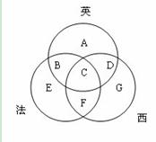 某工作组有12名外国人,其中6人会说英语,5人会说法语,5人会说西班牙语;有3然既会说英语又会说法语,有2人既会说法语又会说西班牙语,有2人既会说西班牙语又会说英语;有1人这三种语言都会说。则只会说一种语言的人比一种语言都不会说的人多( )