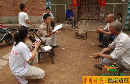 有37%的大学生干部愿意扎根农村,留在村里做事情。图为一位大学生村官在接受调查。河南大学 乔艳辉/图