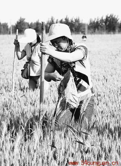 花耳庄村大学生“村官”张文红(前)正在麦田帮助困难农户套种玉米。 |